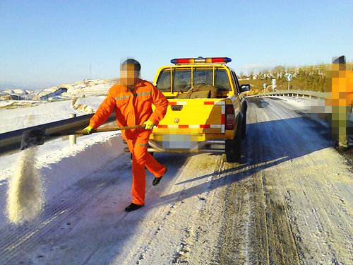 撒融雪劑
